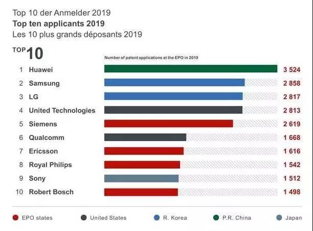 3月12日,歐洲專利局(EPO)發(fā)布了2019年專利排名。數(shù)據(jù)顯示,該局在2019年共收到181000多項(xiàng)專利申請(qǐng),其中,中國(guó)專利申請(qǐng)多達(dá)12247項(xiàng)增長(zhǎng)29.2%,而美國(guó)排名第四,德國(guó)和日本排在前三位。